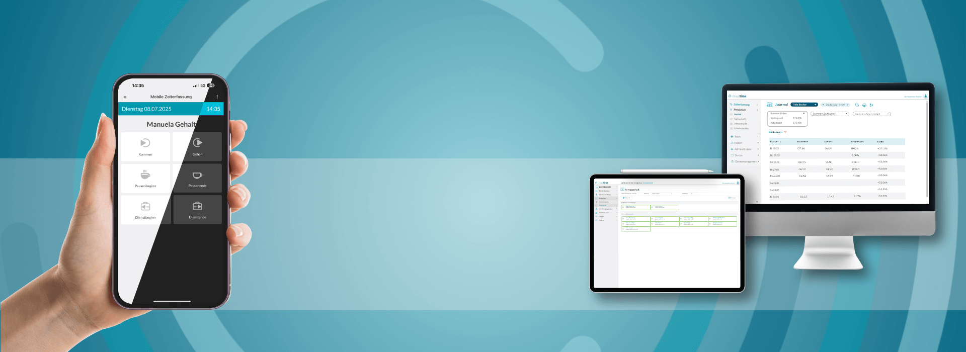 Mit unseren Geräten erfassen Sie schnell und einfach Arbeits- und Projektzeiten . Anträge stellen Sie unkompliziert Online oder in der Mobilen App