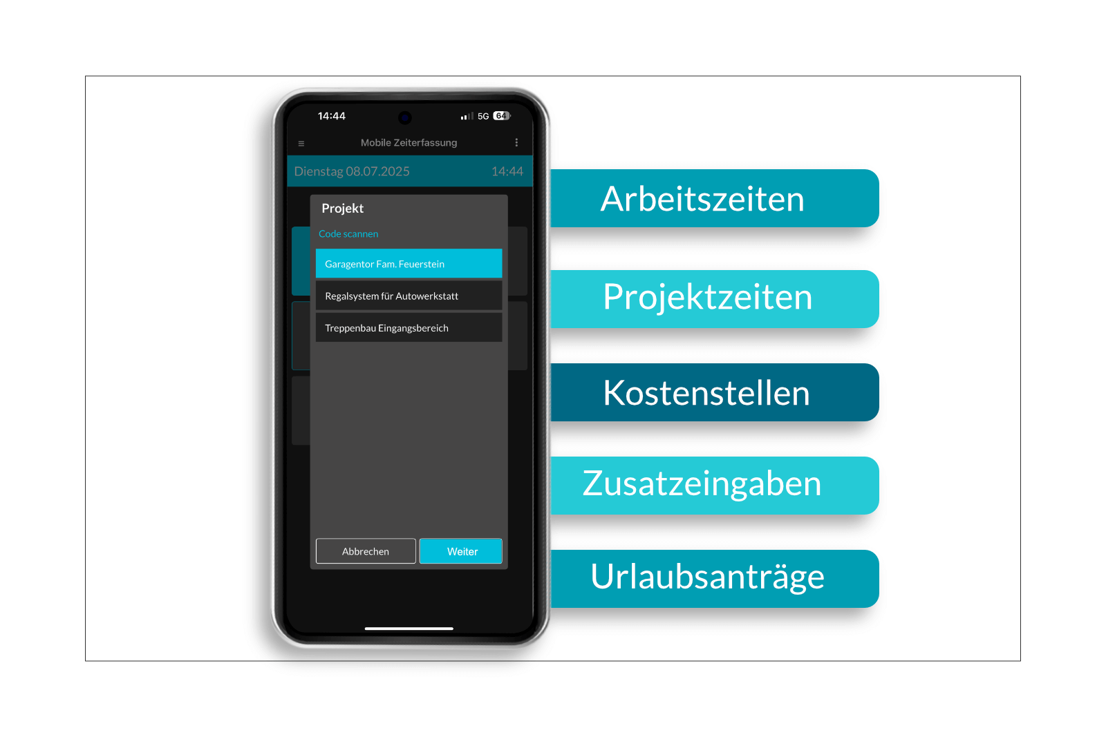 Alle Optionen, die es bei den Zeiterfassungegeräten gibt, sind auch in der App und Webapp parametrierbar.