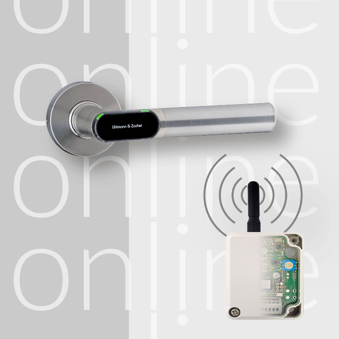 Das eigentliche Einsatzgebiet der elektronischen Türdrücker sind Offline Schließanlagen. Mit einem Funkmodul, welches per Kabel mit einem TCK verbunden ist, kann der Türdrücker auch Online betrieben werden.
